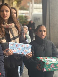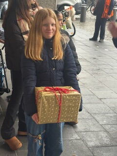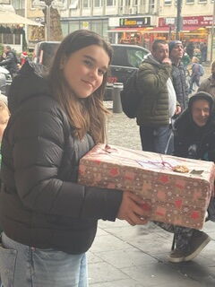 Kurz vor Weihnachten war es dann so weit: Die Gruppe reiste nach Köln, um ihre Geschenke persönlich zu übergeben. Dort trafen sie auf das Team von Juttas Suppenküche, einer Initiative, die sich seit Jahren für Obdachlose einsetzt. Gemeinsam mit Jutta und ihren Helfern verteilten die Schülerinnen nicht nur ihre eigenen Pakete, sondern unterstützten die große Weihnachtsaktion tatkräftig bei der Ausgabe von insgesamt rund 150 weiteren Präsenten.