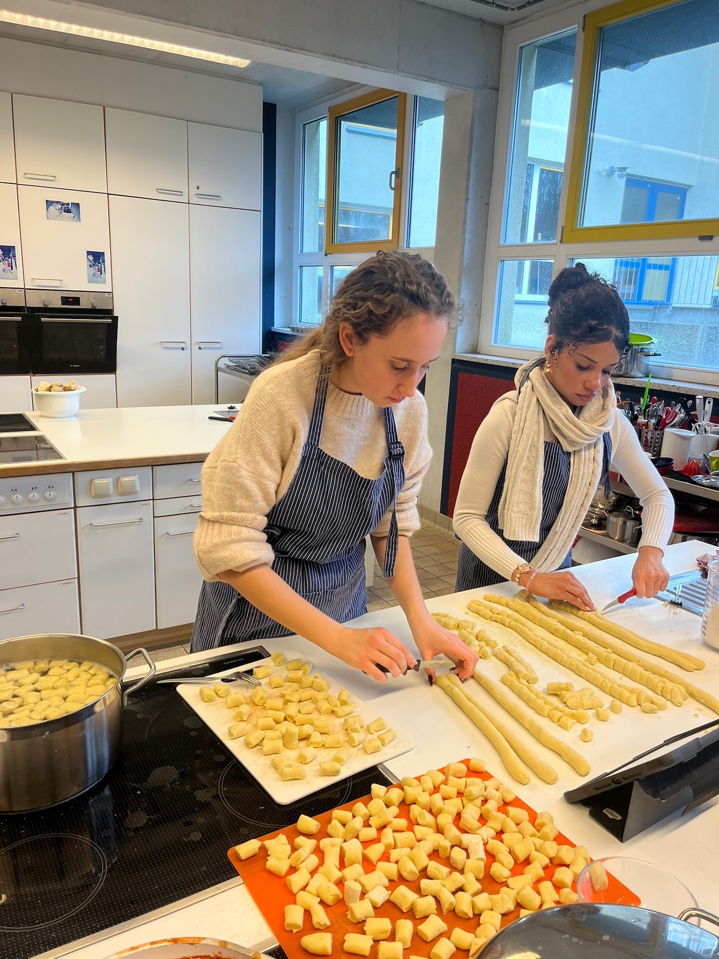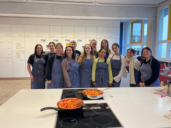 Nachhaltigkeit wurde auch ganz konkret umgesetzt: Beim gemeinsamen Einkauf auf dem regionalen Markt und dem anschließenden Kochen typischer deutscher und italienischer Gerichte standen regionale Produkte, bewusste Ernährung und kulturelle Unterschiede im Fokus. Die Gespräche in der Schulküche zeigten, wie eng Alltagsentscheidungen mit globalen Zusammenhängen verbunden sind.