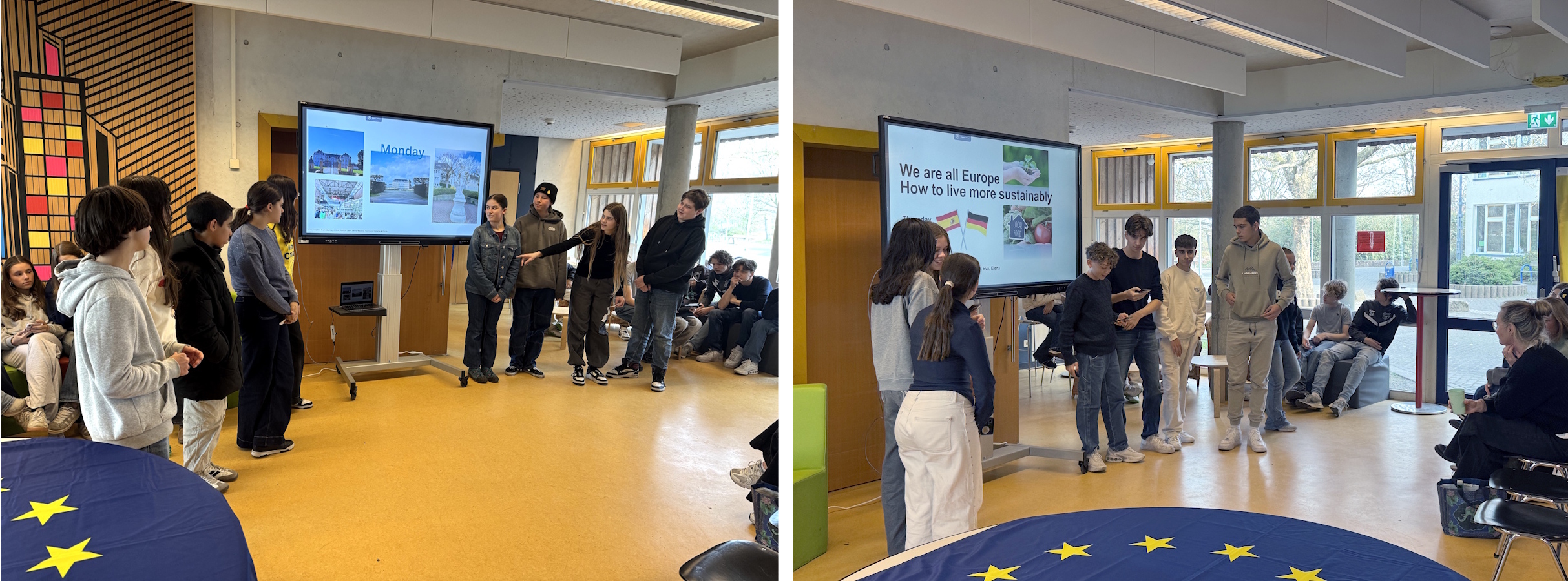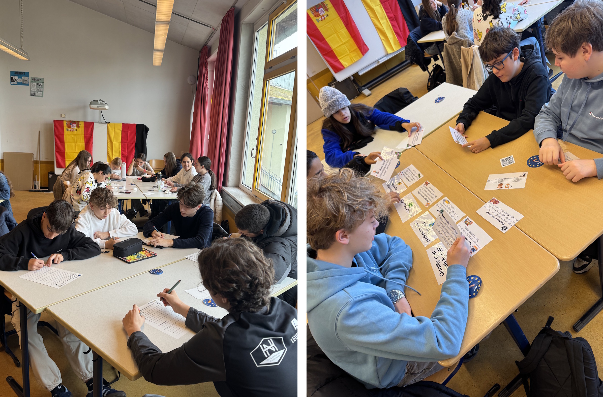 Im Mittelpunkt standen erneut zentrale Zukunftsthemen: So beschäftigten sich die Schüler*innen unter anderem mit der Bedeutung des lokalen Einkaufens und entwickelten kreative Werbekampagnen zur Förderung regionaler Produkte. Ein besonderer Höhepunkt war dabei das gemeinsame Kochen typischer deutscher und spanischer Gerichte, das den interkulturellen Austausch auf genussvolle Weise bereicherte.