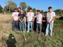 Unterstützt von einer Nachhaltigkeitsexpertin der Universität Oxford erforschten sie im Schulgarten und an einem neu angelegten Teich unterschiedliche Tier- und Pflanzenarten, bestimmten Lebensräume und tauschten sich über den ökologischen Nutzen aus. Ein besonderes Highlight war die symbolische Pflanzaktion: Gemeinsam pflanzten die Schüler*innen einen Apfelbaum, Kastanien und eine Hecke auf dem Schulgelände. Außerdem überreichte unsere Schule der Cherwell School ein Insektenhotel, das künftig den Garten bereichern wird.