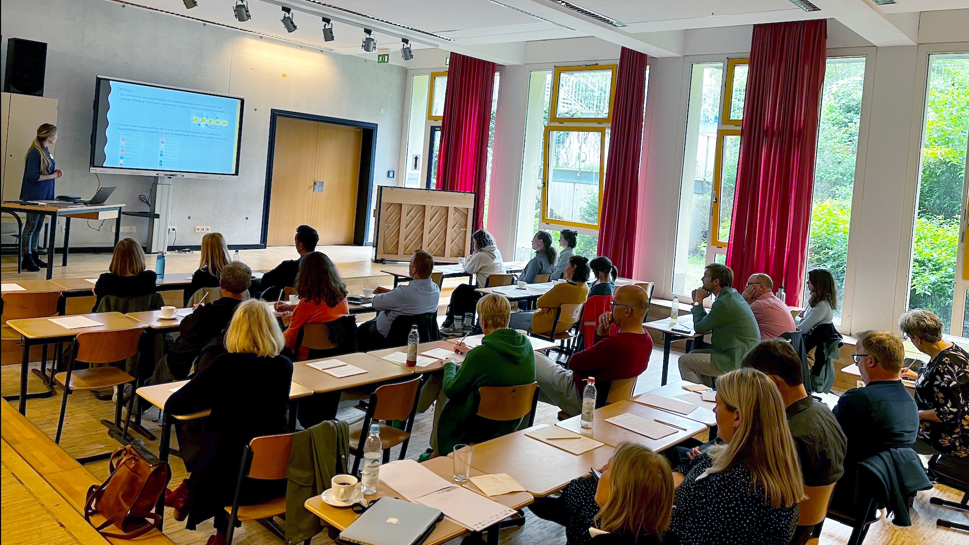Elf zukunftsorientierte Gesamtschulen aus der Region sind heute in Brühl in einen intensiven Austausch getreten. Auf projektorientiertem und selbstgesteuertem Lernen lag der thematische Schwerpunkt, weshalb sowohl im Brühler Freiday (7D) hospitiert wurde und Miriam Remy, die NRW Koordinatorin des Freiday von Schulen im Aufbruch mit vielen Projektinformationen zum direkten Austausch bereit stand, als auch unsere Tabletklassen besucht wurden, bei denen von Physik über Bili bis zu Lernzeiten viele Fächer einen unverblümten Einblick in den Alltag gewährten.