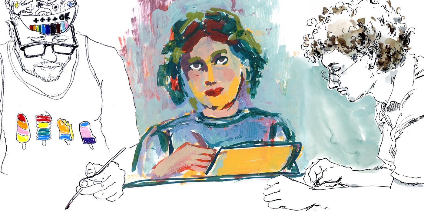 Künstler*innen der Gruppe "MenschenMalen" werden am Vernissage-Abend live zeichnen.