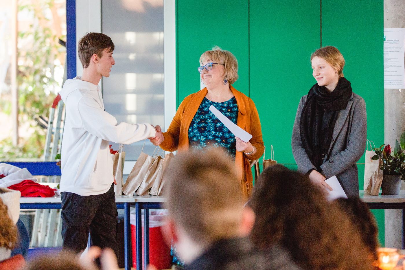 Anlass für die Belobigungen sind hervorragende persönliche Entwicklungen, besondere schulische Leistungen, Teilnahme an Wettbewerben, sportliche Herausforderungen, aber auch hervorzuhebendes Engagement für die Schule in vielen unterschiedlichen Bereichen. Unser Förderverein sponserte die Buchgeschenke und war unterstützte uns bei der Übergabe der Urkunden und Auszeichnungen. Die Schüler*innen freuten sich sehr über die Anerkennung und verfolgten alle sehr aufmerksam und gespannt die stimmungsvolle Veranstaltung.