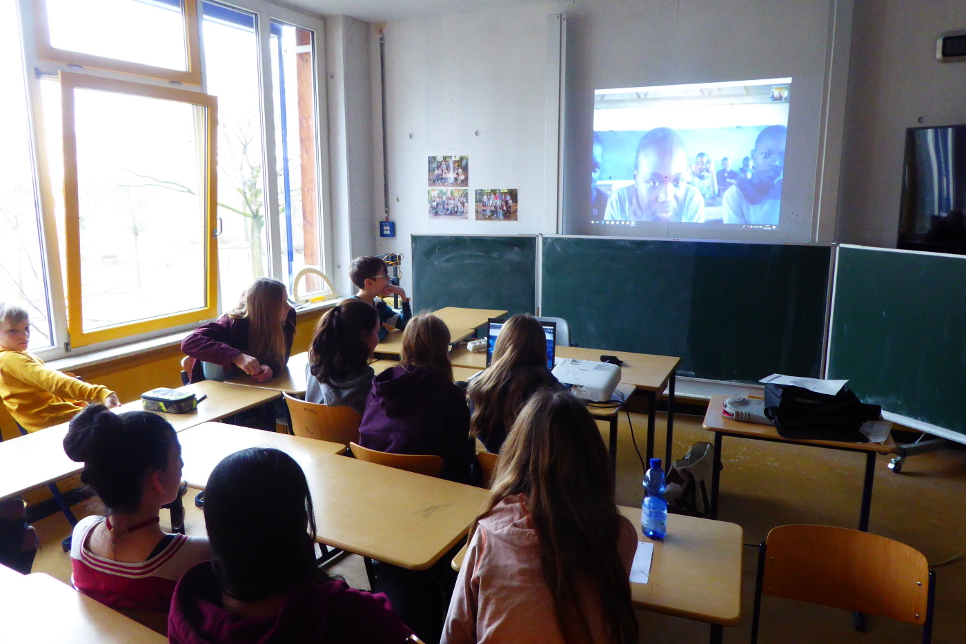Auf beiden Seiten ist die Neugier riesengroß – ebenso aber auch die Schüchternheit und Aufregung. Die Gelassenheit weicht Nervosität, und keiner unserer Schüler*innen möchte den Anfang machen. Doch bald ist das Eis gebrochen, und unsere Schüler*innen stellen den sympathischen Schüler*innen aus Dunga ihre Fragen: „How are you? How old are you? In which class are you? Do you have brothers and sisters? What are your hobbies? What do you want to work after school? How is the weather in Dunga? What would you show me in Dunga if I come to Kenya?” Und aus Kenia zurück: “What is your favorite colour? What is your favorite food? What is your favorite subject in school? Are you coming to Kenya?”