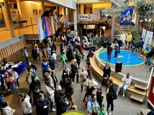 Auch die sehr engagierte Elternschaft unserer Schule zeigte, dass die Europagesamtschule Brühl auf allen Ebenen gelebt wird: So gab es ein fantastisches Essens- und Getränke-Angebot durch das Elternteam, die ein oder andere Anekdote und Popcorn durch den Förderverein sowie Einblicke in unser umfangreiches Konzept zur Teilleistungsschwäche (LRS, Dyskalkulie und ADHS) durch die Vertreter:innen des LESAT-Arbeitskreises. Auch die Bühne im Lichthof war durchgängig belebt, auf der Besucher:innen mit unserem Zirkus-OA direkt in die verschiedenen Spielarten der Jonglage zum Mitmachen aufgefordert wurden sowie durch unsere Theatergruppe, die zwei packende Performances auf die Bühne brachte.
