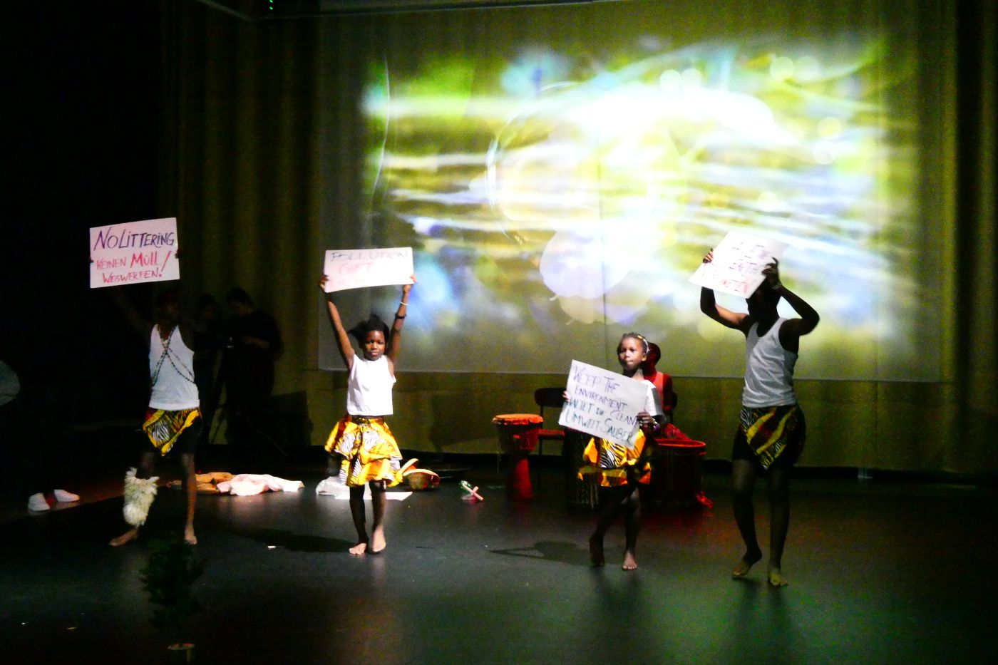 Der Auftritt war eingebettet in ein dreitägiges Projekt, bei dem 40 Schüler*innen der Gesamtschule Brühl (AG Nachhaltigkeit, Dunga-Freundschaftsprojekt, Darstellen & Gestalten-Kurse Jg. 7 – 9) in multimedialen Workshops Themen wie Klimawandel, Nachhaltigkeit und Umwelt kreativ bearbeiteten. Unter dem Dach des Jugendkulturhauses „Passwort Cultra“ des ASB Rhein-Erft/Düren trafen Kinder und Jugendliche aus dem globalen Norden (Brühl) und Süden (Kenia) zusammen, um gemeinsam kreative Kunstprojekte zu schaffen und einander näherzukommen.