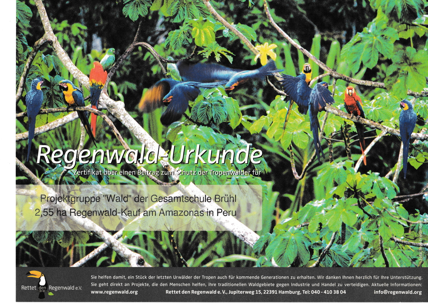 Projektgruppe „Wald“ spendet 850,85€ an ein Regenwaldprojekt im peruanischen Amazonastiefland