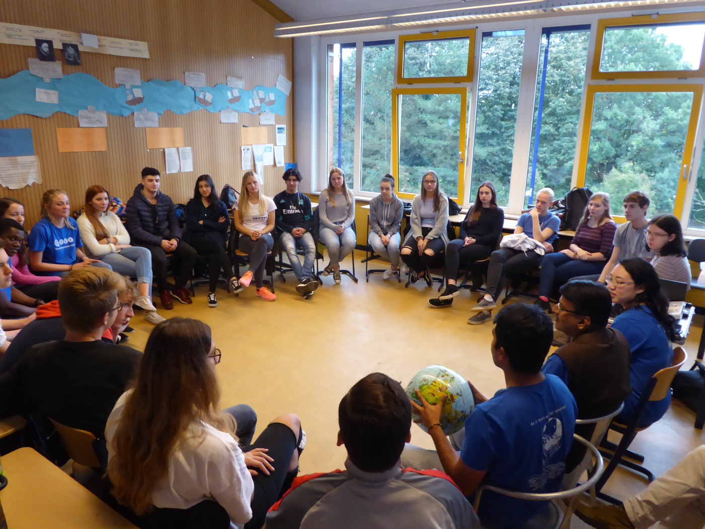 Mit vielen Warm-Up- und Energizer-Spielen und vielen Diskussionsrunden zwischen „Nord“ und Süd“ gestalteten die 14 jungen Freiwilligen einen sehr interessanten und kurzweiligen Vormittag für unsere Q1-Schüler/innen.