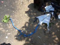 Die Flugdrachen stellte man aus zerrissenen Plastiktüten und Papyrus her. Wieder einmal wurde das leichte Papyrusholz als Streben benutzt zum Spannen der zerrissenen Plastiktüten. Der Drachenschwanz wurde aus zusammengeknoteten Plastiktütenstreifen gebaut und mit einem kleinen leichten Plastikstrauch am Ende versehen, um ein Gegengewicht zur Stabilisierung zu haben.