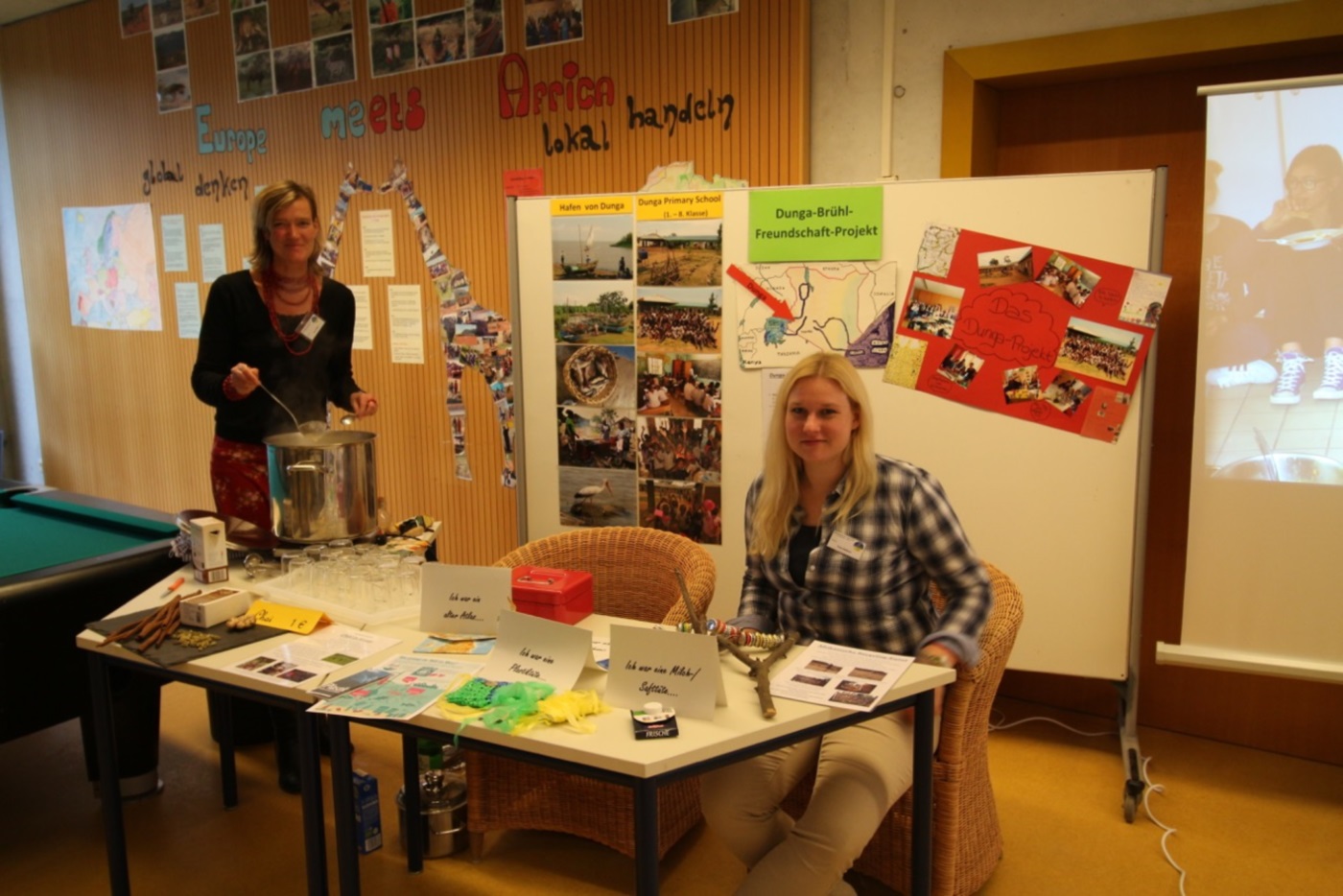 Auch in diesem Jahr präsentieren unsere Schülerinnen und Schüler wieder einen schönen und informativen Stand zum Dunga-Brühl-Schulfreundschaftsprojekt, an dem sich interessierte neue Schülerinnen und Schüler und deren Eltern informieren können. Zum Probieren und Aufwärmen servieren wir den landestypischen „Chai“ - ein stark gesüßter Schwarztee mit reichlich Milch und auch kräftigen Gewürzen, wie er an der kenianischen Küste zubereitet wird.