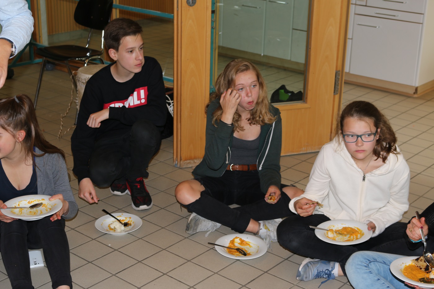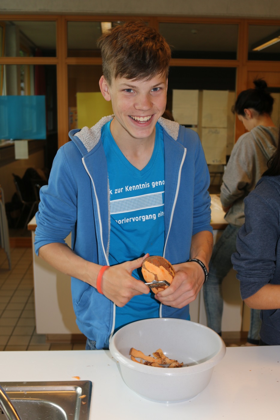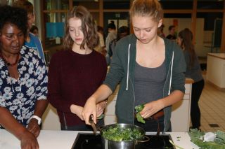 Eigentlich wollten wir die Mitglieder unseres Schulpartnerschaftsprojekts mit Dunga in Kenia beim Kochprojekt am Ende des Schuljahres überraschen. Wir hatten ihnen nicht verraten, dass afrikanisch Kochen Feuerholz sammeln, Wasser tragen und eine Feuerstelle auf dem Schulhof bedeutet. Allerdings machte das schlechte Wetter uns einen Strich durch die Rechnung. Aber auch in der Schulküche hatten die Schülerinnen und Schüler der 7. und 8. Klassen viel Spaß bei der gemeinsamen Zubereitung eines typisch kenianischen Essens aus der Region Kisumu, in der auch Dunga liegt. Unterstützt wurden wir dabei von Frau Jeanette Juch, die selbst in der Region Kisumu aufgewachsen ist und den Kindern während des gemeinsamen Kochens und Essens viele persönliche Erfahrungen vom alltäglichen Leben in Afrika weitergeben konnte.