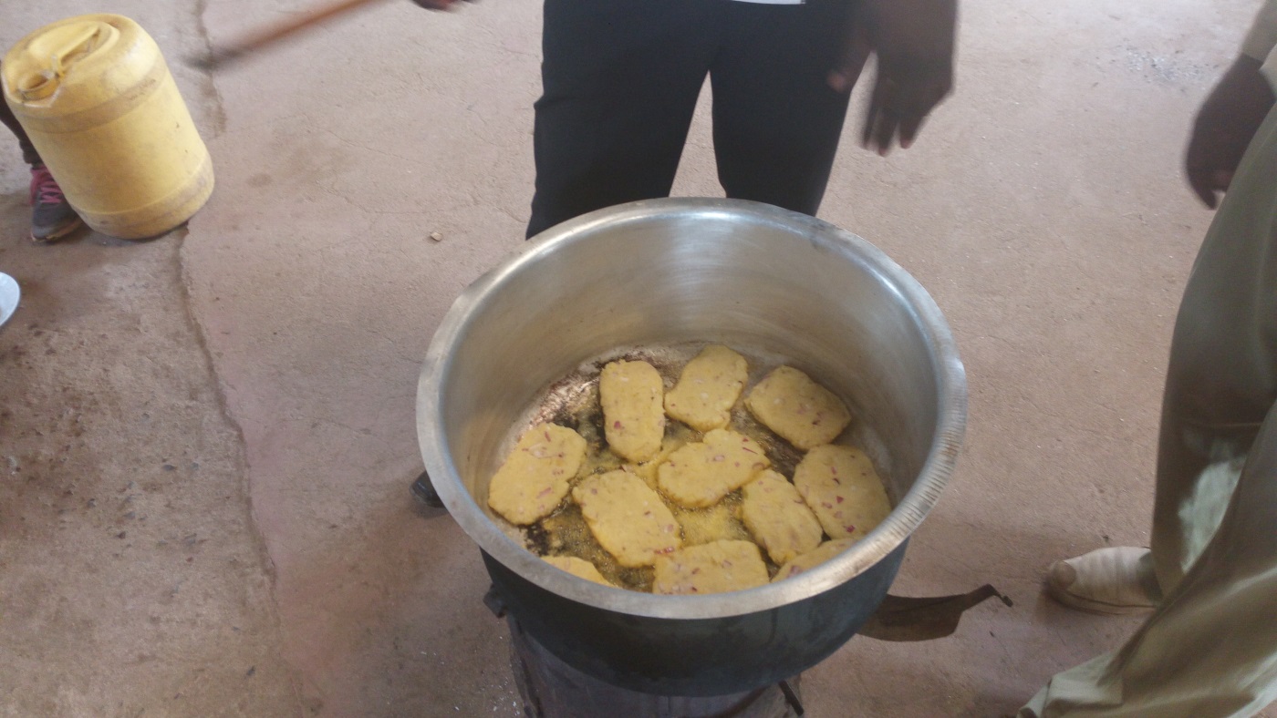 Das Kochprojekt startete damit, dass Joram, der Koch, und ich, Rebecca, die Freiwillige von Ecofinder, am Tag vor dem eigentlichen Projekt alle Zutaten und Materialien in der Stadt besorgten. Dazu gehörten eine große Menge an Kartoffeln, Hackfleisch, welches wir vorbestellen mussten, Pappteller, Gewürze, Zwiebeln etc. Denn als deutsche Gerichte hatten wir Kartoffelpuffer und Frikadellen ausgewählt, zwei Gerichte, die einfach zuzubereiten sind und deren Zutaten auch vorhanden waren.