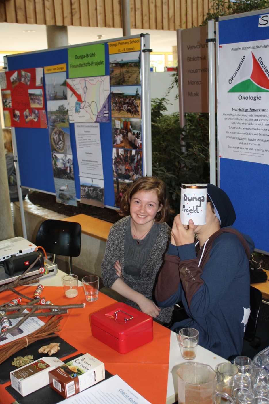 Bereits zum 4. Mal präsentieren die Schülerinnen und Schüler des Dunga-Brühl-Schulfreundschaftsprojekts auf einem Tag der offenen Tür an ihrem schönen Stand Interessantes, Wissenswertes und Kulinarisches rund um das Fischerdorf Dunga am Viktoriasee in Kenia: Wo liegt das Fischerdorf Dunga? Wo in Afrika befindet sich Kenia? Wie lebt es sich in Dunga und wie sieht es dort aus? Welche Kinder lernen an der Dunga Primary School? Und wie läuft unserer Freundschaftsprojekt mit der Schule in Kenia ab? Was ist die Projektidee? Welche gemeinsamen Aktionen und Projekte führen wird durch? Wie halten wir die Freundschaft aktiv und lebendig?