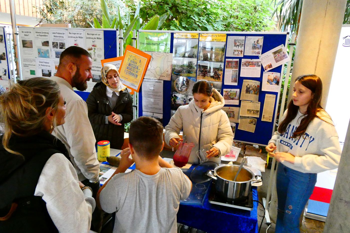 In diesem Jahr präsentierten erstmalig die 12 Schüler*innen der AG Nachhaltigkeit das Dunga-Brühl-Schulfreundschaftsprojekt.