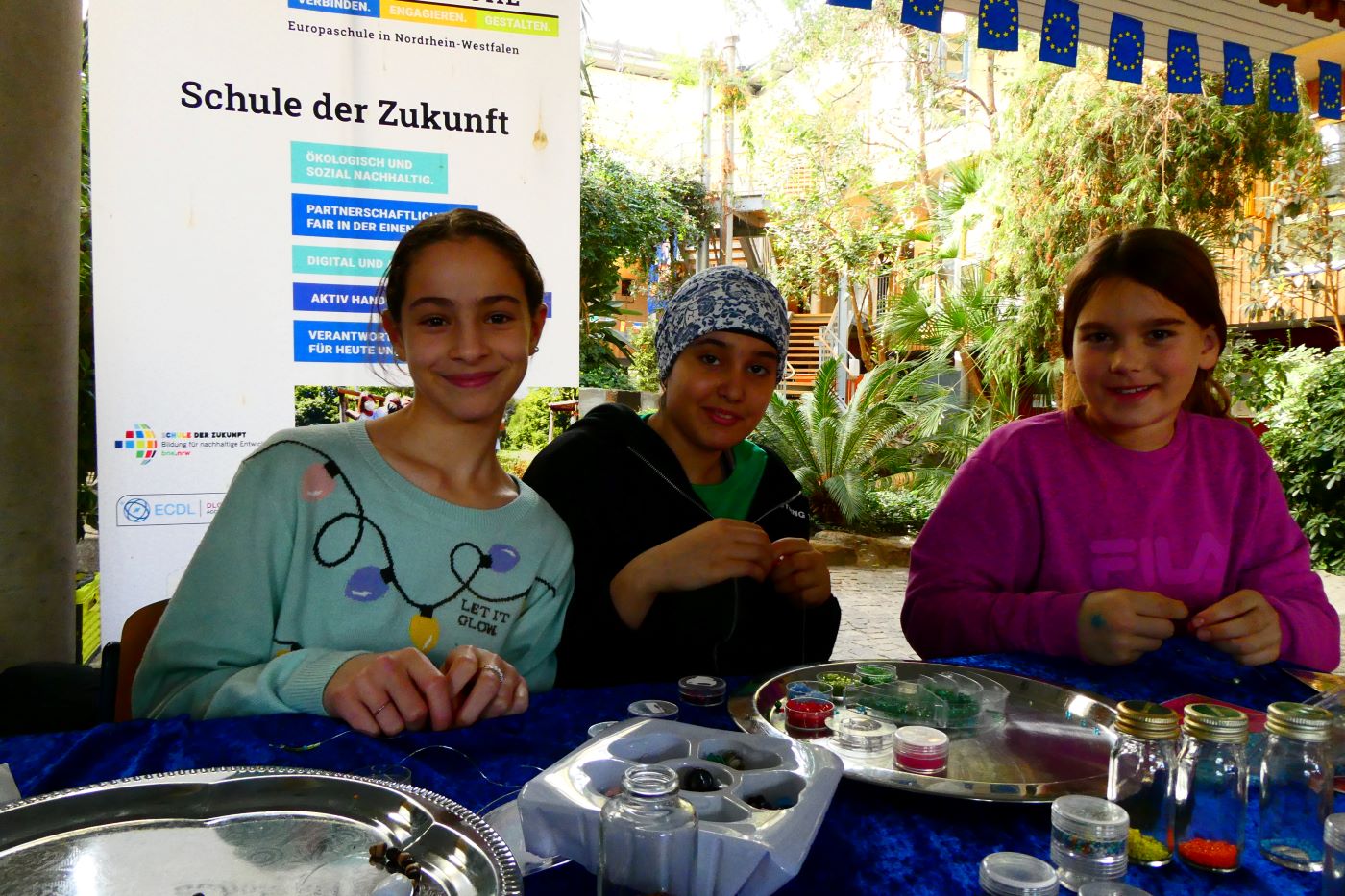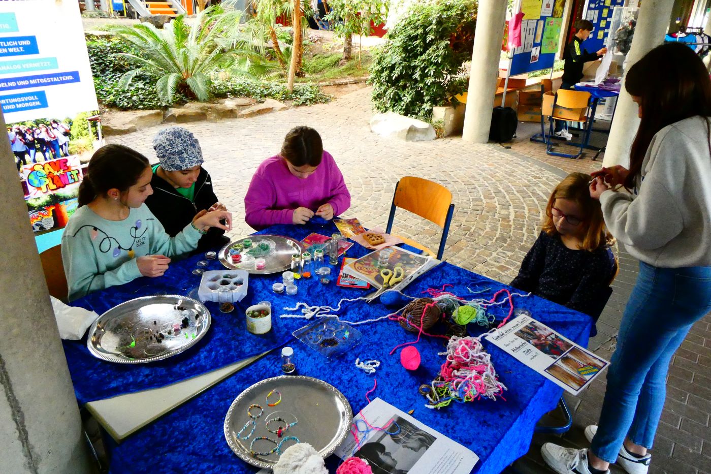 Zusammen mit den kleinen Besuchern bastelten sie Perlenarmbändern und flochten ihnen afrikanische Zöpfe.