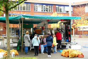 Das von den Schüler*innen der Nachhaltigkeits-AG des 5. Jahrgangs selbstgemachte Apfel-Quittengelee unserer Streuobstwiese stieß dabei auf großes Interesse. Und die „Gute Bioschokolade“ von Plant-for-the-Planet, deren Verkaufserlös dem Regenwaldprojekt „Bennis Wald“ zugutekommt, fand reißenden Absatz.